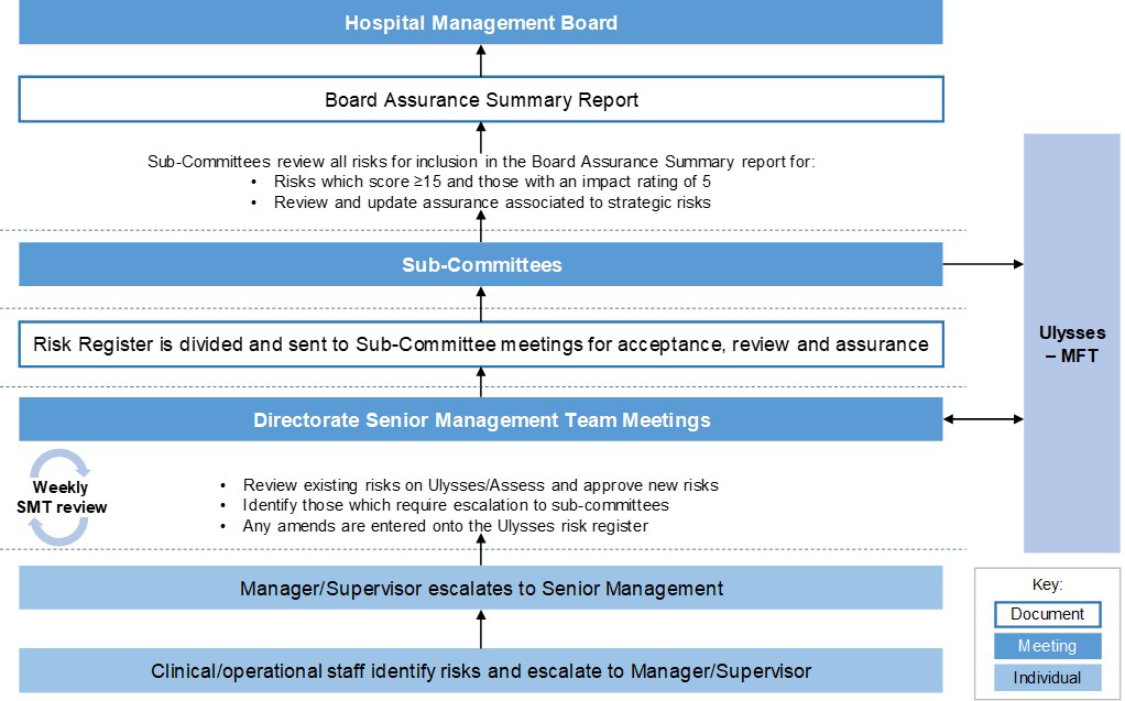 It is important that colleagues raise risks as soon as they become aware of them. You must raise any risks with your line manager, who will then escalate to Senior Management. Risks are reviewed and validated in Senior Management Team meetings. It is the responsibility of Senior Management to add these risks to Ulysses (our system for reporting risks) and then to support/ identify mitigations or actions that can be taken to reduce or eliminate the risk. Your line manager will ensure you receive feedback on actions taken to mitigate risks. The diagram attached demonstrates this process.